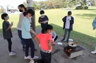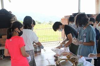 感染症対策のため、野外炊飯は学校ごとでの班編成で行いました。