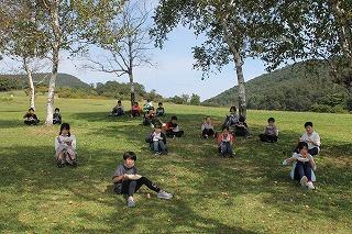 今日も気持ちのいい天気の中、5,6年生は、キゴ山へ3校合同野外活動へ行って来ました。