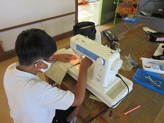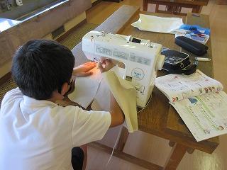 はじめに、手縫いとの違いを確認し、「下糸のまき方」、「上糸のかけ方」、「下糸の入れ方・引き出し方」、「縫い方」、「縫う方向のかえ方」を学習しました。