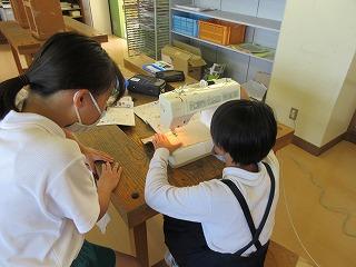 5年生は、3・4限目の家庭科の時間に、はじめてミシンの使い方を学習しました。