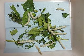 カイコの引き渡し会から10日ほど経ちました。津幡高校からいただいたカイコは、桑の葉をもりもりと食べて、元気にすくすくと育っています。