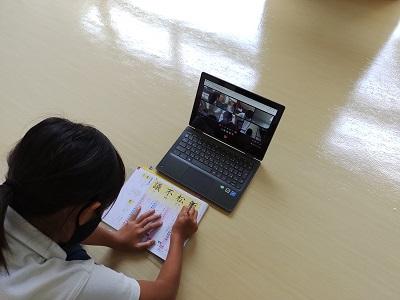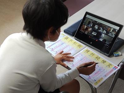 Chormebookで「Meet」というビデオ会議機能を使い、「オンライン漢字練習」を行いました。