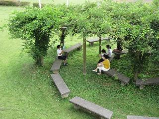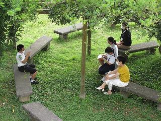 ③同じく、昼ゆとりの時間に、外の自然の中で4年生が読み聞かせをしてくれました。