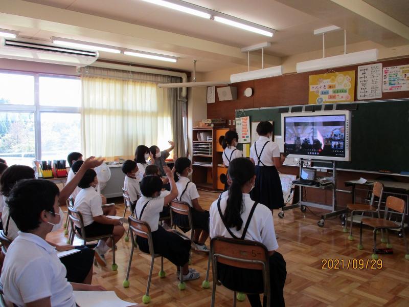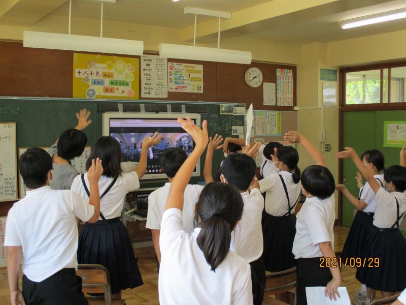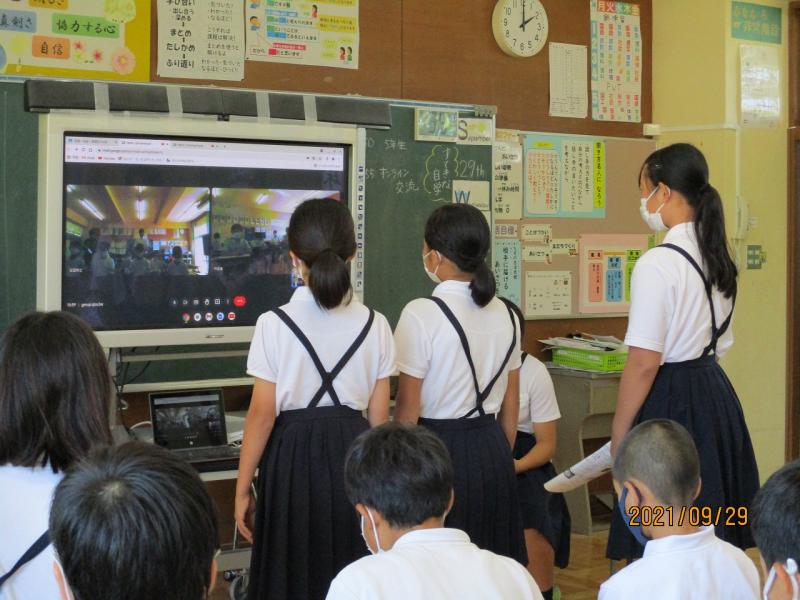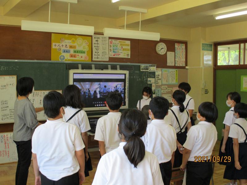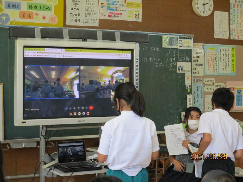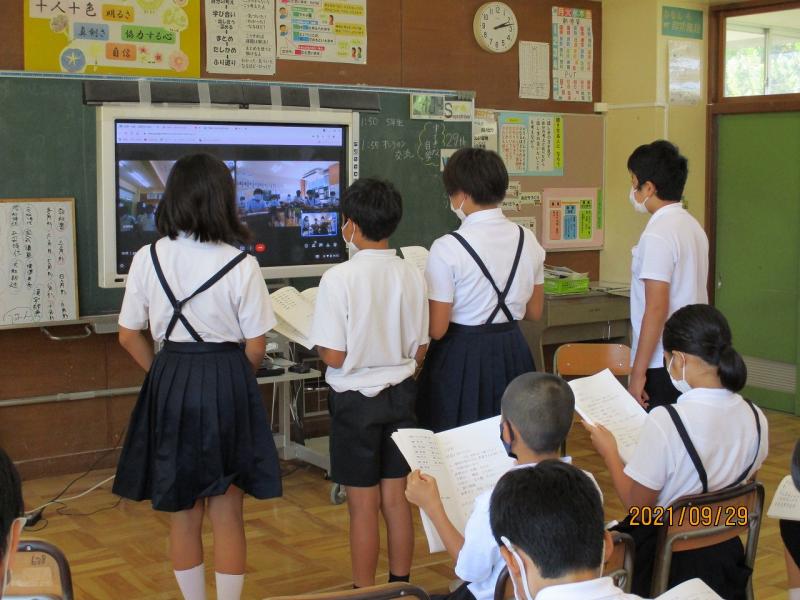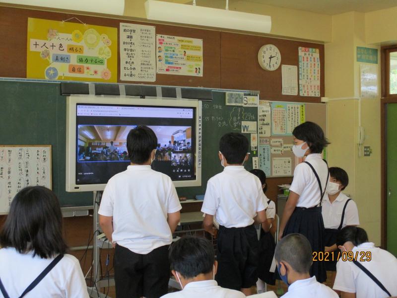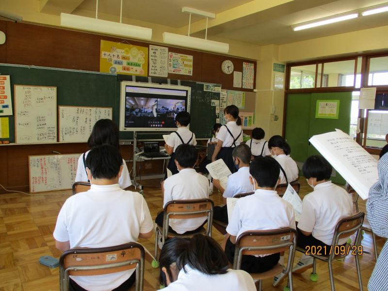 5時間目の終わり、午後1時55分から、笠野小、刈安小と共に、来月4,5日に行う野外活動の最終確認をするためのオンライン交流を行いました。