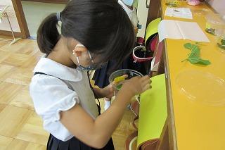 1年生は、昨日、津幡高校からいただいたカイコのお世話を早速していました。カイコが入っているケースを掃除したり、クワの葉をあげたりしていました。