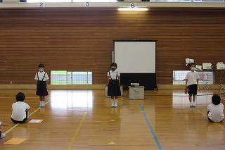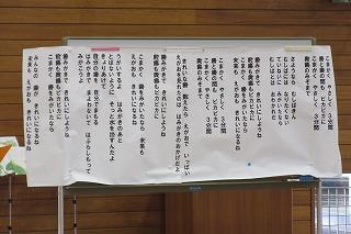 最後に、1年生が国語科「やくそく」の音読発表会と詩の暗唱をしました。一人一人が体育館に響き渡るような大きな声で話しており、1年生の成長が感じられました。