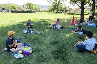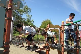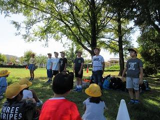 津幡中央公園では、全体遊びで「しっぽとり」と「ケイドロ」をしました。4年生が内容を考え、ルール説明も行いました。子供たちは、歩きの疲れを見せず、思いっきり走っていました。