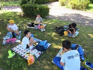 全体遊びの後は、昼食の時間でした。家族に作ってもらったお弁当を、とてもおいしそうに食べていました。