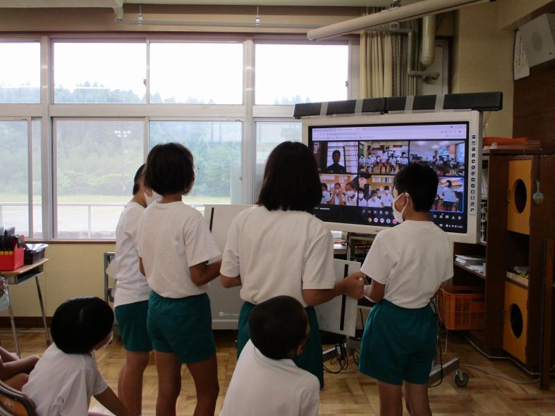 タブレットを使用し、萩野台の6年生による司会で始まり、各学校で決めた事柄を発表していました。皆さんハキハキとしっかり答えていましたよ。