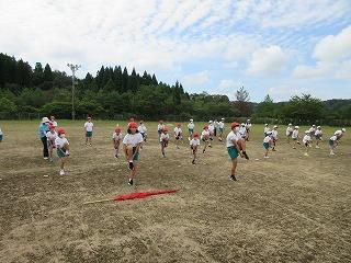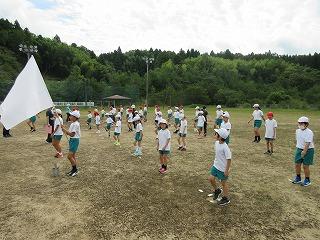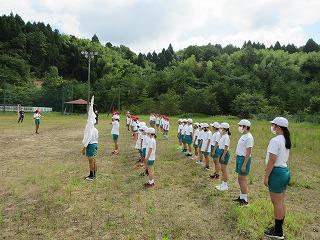 2限目に、全校児童で運動会の全体練習をしました。今まで運動会の練習を、低学年、高学年それぞれで行っていました。全校児童が集まっての練習は今日が初めてです。