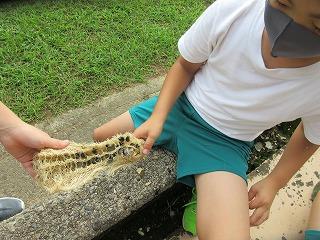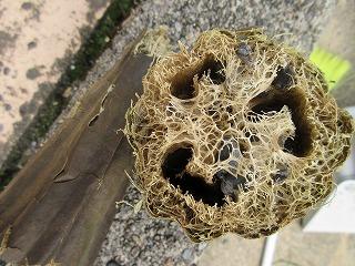 5限目の理科の時間に、4年生は、ヘチマの実の中の様子を調べました。3年生のとき、「植物は、花が咲き、実ができた後、たねができる」という学習をしました。ヘチマも、本当にたねができているのか、たねができていたら数はどれくらいかを考えながら調べました。