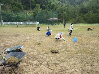 昨日PTAの皆様による草刈りを行いましたが、今日の午前中、刈り残した場所やフェンス際の場所などを、公民館館長の大西さん、地域の小山さんに刈っていただきました。いつも、ご協力いただきありがとうございます。