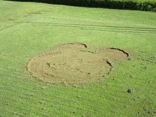 校務員さんが、萩野っ子のために、芝をミッキーマウスの形に刈ってくれました。