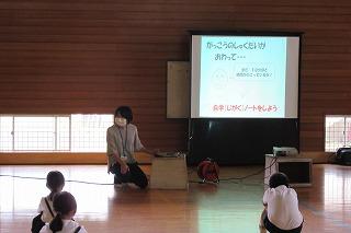 子どもたちは、元気よくあいさつをしていました。今月の生活目標は「相手に届けるあいさつをしよう」です。明るい声で、相手の顔を見て気持ちのよいあいさつをするようにがんばっています。