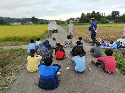 子供たちは一生懸命稲を刈っていました。