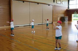 ゆずの「タッタ」という曲に合わせて、元気よくステップしたりジャンプしたりします。