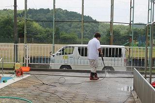 ↑掃除前(前の方やプールサイドは、朝早く<7時30分頃>から、石野さんと校務員さんがしてくださいました)