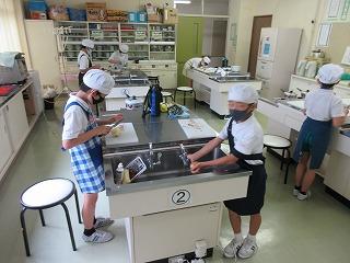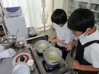5年生は、3・4限目の家庭科の時間にゆでる調理をしました。