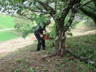 午前中、萩野台公民館の館長さんに、校門前のサクラの木の枝を切っていただきました。サクラの木の形を整えたり、風通しを良くしたり、見通しをよくしたりするためです。館長さんは、サクラの木の形を整えて、サクラの開花時期に地域の方に散策していただければうれしいと話していました。また、学校周辺には、4種類のサクラの木があり、その中のしだれ桜も整えて、来年、きれいなしだれ桜が見れるのを楽しみにしているそうです。