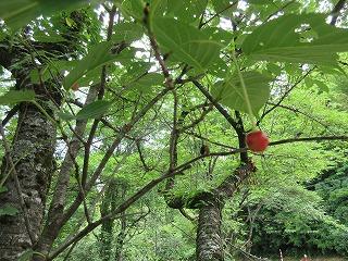 また、サクラの実についても教えていただきました。木に赤色の実が少しありました。また、地面には黒い実も落ちていました。サクラから実はできますが、鳥がほとんど食べてしまうそうです。みなさんが日頃食べているサクランボは、サクラを品種改良したものだそうです。