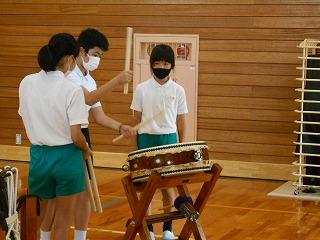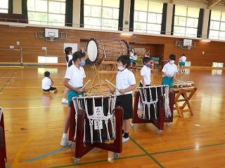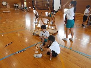5,6年生は久しぶりのばちを握る感覚を懐かしんでいるようでした。