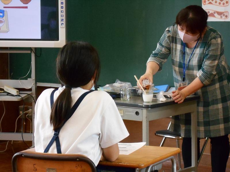 コーラやオレンジジュース、スポーツドリンクなどには砂糖がたくさん含まれていることを知って驚く6年生のみなさん。