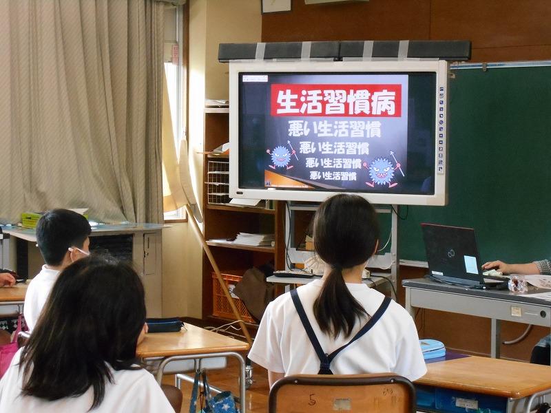 6年生が栄養教諭の今井先生と「生活習慣病を予防しよう」という勉強をしました。