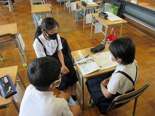 5年生は、社会科で「高い土地のくらし」について学習しています。今日は、群馬県嬬恋村で「キャベツマラソン大会」が開かれるのはどうしてなのかを考えました。教科書の写真やグラフなどを手かがりに考えました。考えが行き詰まったときには、グループで相談しながら、考えを深めていきました。嬬恋村では、涼しい気候を活かしてキャベツづくりをしたり、スキー場やスケート場を設け、観光客が来るように工夫していました。キャベツマラソンは、嬬恋村やキャベツの美味しさをPRするのに役立っているようです。