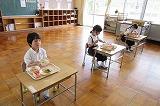 人数は少ないですが、みんな仲よく、おいしく給食を食べています。