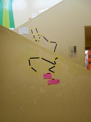 立ち位置によって見え方が変わり、つながってみえる、おもしろい作品です。