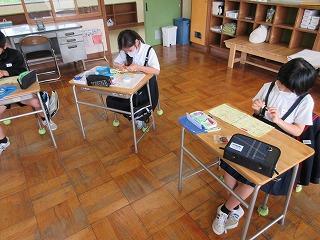 1年生はDVDで横断歩道の渡り方を学んだあと、実際に外に出て交差点を横断する練習を行いました。4年生はDVDで自転車の安全な乗り方を学びました。県内でも悲惨な交通事故が起こっています。1年生・4年生だけではなく、全校が交通事故に遭わず、安全に過ごせるようにしたいものです。繰り返し繰り返し子どもたちと交通安全の大切さを学んでいきたいと思います。