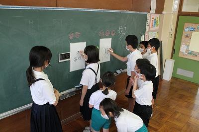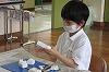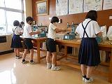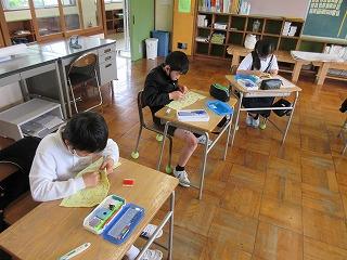 5年生が、3・4限目の家庭科の時間に、手ぬいの練習をしました。玉結び・玉どめにも少しずつ慣れ、今日は、なみぬいをしたり、自分の名前をカタカナでぬったりしました。集中して、ていねいにぬっていました。