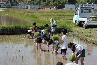 今日は快晴!!4・5年生は外に出かけて田植え体験をしてきました。