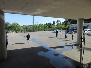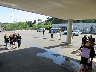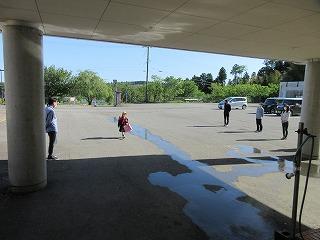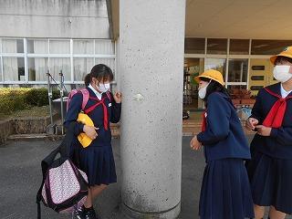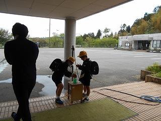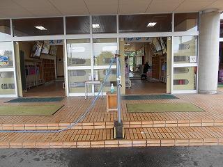 登校後には、玄関に入る前に手洗い・消毒をしてから入ります。
