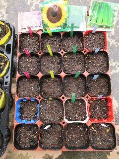 ホウセンカ、ひまわり、ピーマン、オクラのたねをまきました。