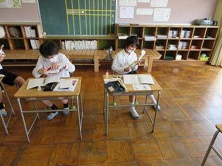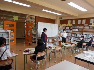 火曜日の朝学習は、学校図書館司書に読み聞かせをしてもらいます。