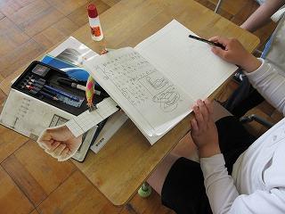 筋肉模型のうでを曲げたり、のばしたりしています。 | ノートに図をかいて、まとめています。 |