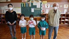 受け取った後の1年生はとてもにこやかな顔でえんぴつ立てを見つめていました。