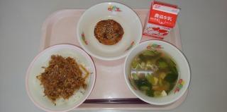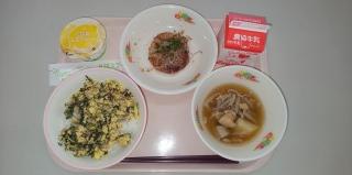 今週の給食は、月曜日が広島県の献立、火曜日がわかめごはんに肉うどん、水曜日は卒業お祝い献立、そして今日は6年生が小学校で食べる最後の献立、肉みそ丼とチヂミでした。6年生の皆さん、小学校の給食はどうだったでしょうか。おいしく楽しく食べられましたか。1年生の時は食べられなかったものが、今ではたくさんの食品を食べられるようになったでしょうか。これからもしっかり食べて、健康で丈夫な体をつくり、どんどん成長していってくださいね♪