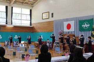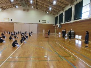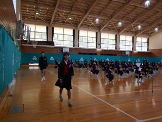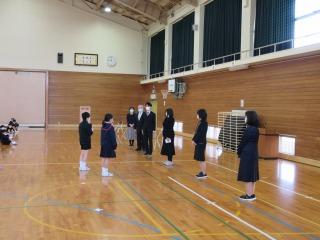 8時30分から体育館で離任式が行われました。卒業生の皆さんも出席しました。