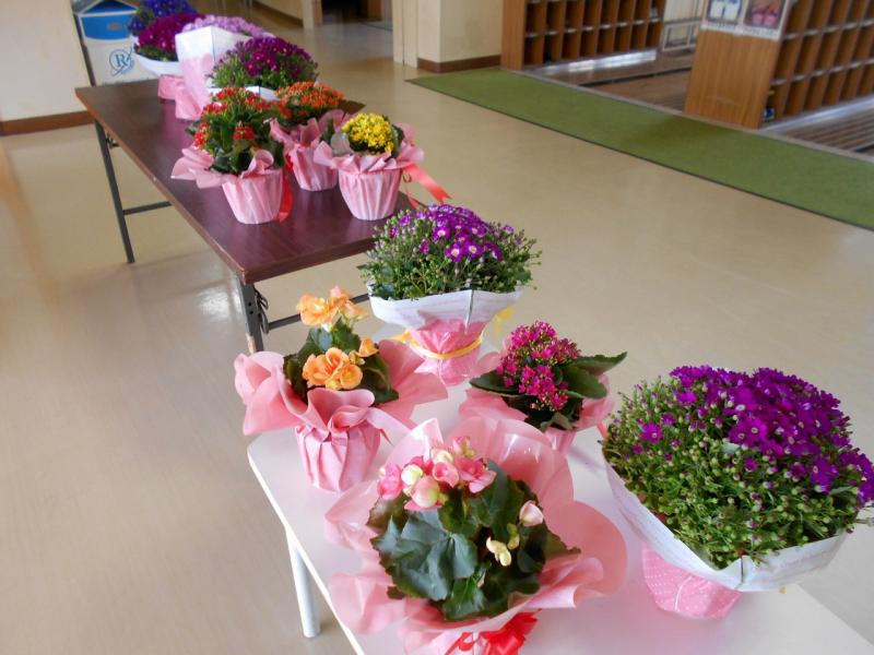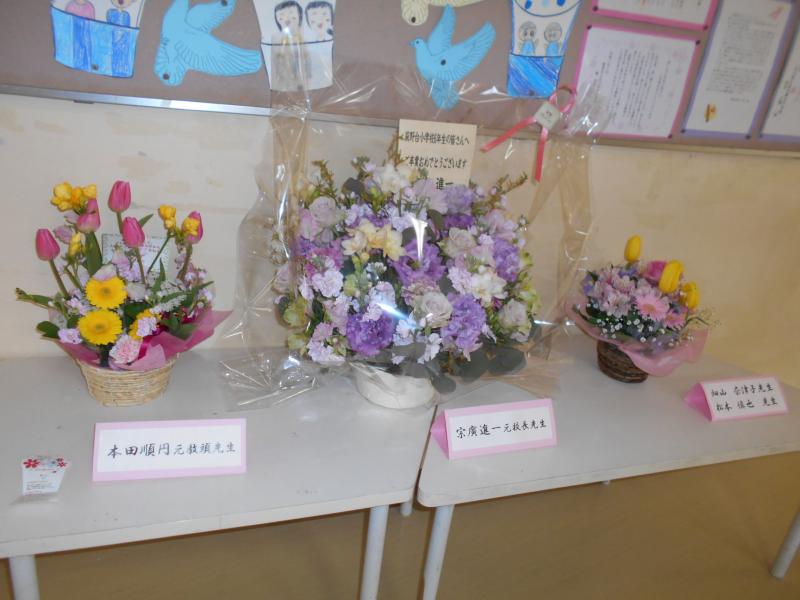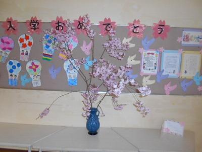 図書室前には、地域の民生委員さんにいただいた立派な桜も飾られ、学校全体がお祝いムードに包まれています。