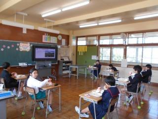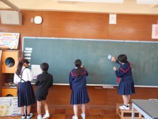4年生は、これまで使ってきた教室を気持ちよく次の学年に渡せるように、自分達の教室や机の中、ロッカーや下駄箱の掃除をしました。給食の時間には、一人1台タブレットパソコンを使って作成した思い出アルバムを見ながら、1年を振り返りました。
