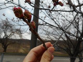 本校校門横のサクラは、今にも開花しそうでしたが、まだ完全に開花した花は見られないようです。今日の午後か明日には開花しそうです。