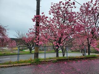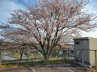 萩野台コミュニティ側の電信柱横のサクラです。