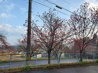 学校の敷地にはたくさんのサクラの木があります。春休み中のサクラの様子をご覧ください。