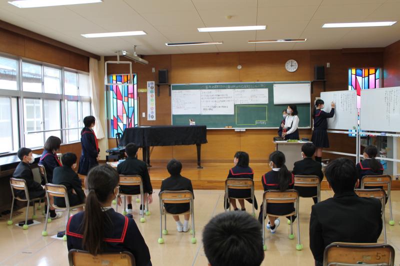 5年生はしっかり準備をし、みんなが話し合いやすいように考えてくれました。また、自分から進んで意見を出してくれました。4年生も自分の考えを積極的にお話してくれました。また、「相手の方を向いて話す、聞く」ことがしっかりとできていました。そして、その様子を見守る6年生は、下級生が話している間は見守る、話し合いが滞りそうなときは全員でサポートするということができていました。さすが、これまで学校を引っ張ってきたリーダーたちです。