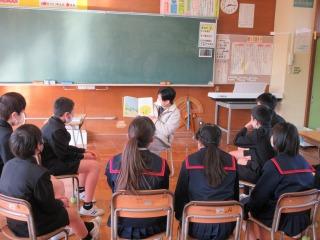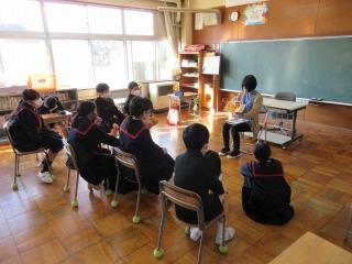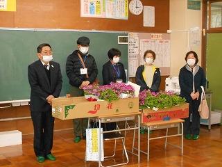 今日は倶利伽羅地区の民生委員の方々が学校に来て下さいました。そして、もうすぐ卒業する6年生のためにお祝いの言葉をお花を頂きました。
