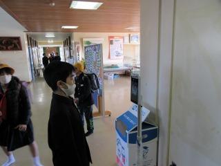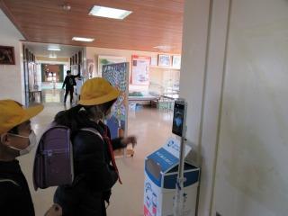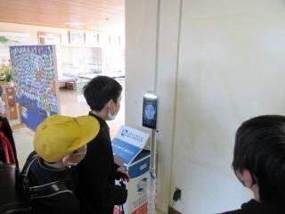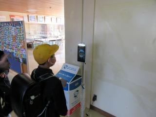 下校時、何人かの児童が、顔をかざしてみましたが、反応しませんでした。その後、職員で試してみると、しっかりと反応するようになりました。