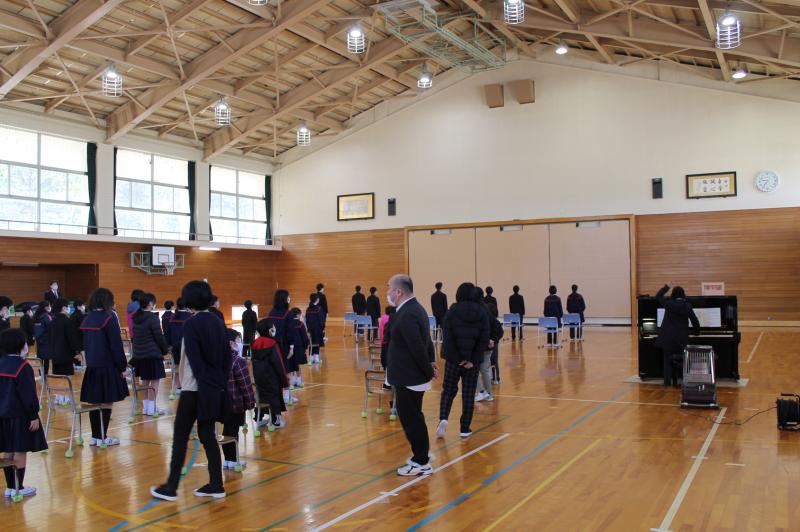 2限目に、6年生が卒業式練習をしました。先週から6年生は卒業式に向けて練習をしています。今日は、実勢に校長先生から卒業証書を受け取る練習をしました。