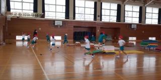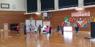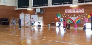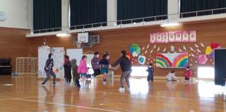 大きな体育館を横に使い、1年生は、体を大きく伸ばして踊りやなわとびをしながら走り回っていました!